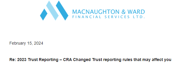 CRA announced new information reporting requirements for trusts that takes effect as of December 31, 2023. This information may affect you now or in the future.